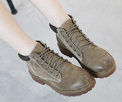 (TDA)/Women's/Boat Shoes/DIRECT FROM USA/TDA Women's Casual Comfort Lace-up Leather Stitching Ankle Martin Boots