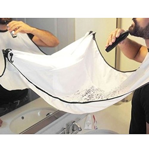 Wonpurs Beard Catcher Bib, Beard Shaving Bib Catcher for Easy Clean Up & a Clog-Free Drain – Grooming Cape Gift Ideas for Men (White)