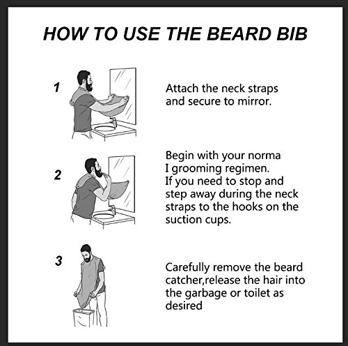 - ▶ EASY TO USE - Attach the neck straps and secure to mirror. Begin with your normal grooming regimen. If you need to stop and step away during grooming you can attach the neck straps to the hooks on the suction cups. Once complete lower over the trash can and gently shake,Hair will fall easily.