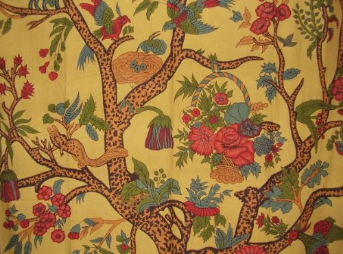 Tree of Life Tab Top Curtain-Drape-Door Panel-Mustard