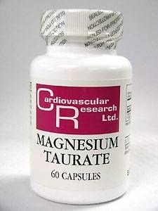 -. Binding : Health and Beauty -. Brand : Cardiovascular Research -. Department : unisex-adult -. EAN : 0087614992228 -. Feature : Magnesium Taurate from Cardiovascular Research Ltd. / Magnesium and amino acid supplement / Maximum bioavailability, 125 mg -. Label : Cardiovascular Research -. LegalDisclaimer : Must be 18 years of age or older to purchase.This product is not intended to diagnose, treat, cure, or prevent any disease. Check with physican before use. -. Manufacturer : Cardiovascular Research -. Model : 3956 -. MPN : EC0103 -. PackageQuantity : 1 -. PartNumber : EC0103 -. ProductGroup : Health and Beauty -. ProductTypeName : HEALTH_PERSONAL_CARE -. Publisher : Cardiovascular Research -. Studio : Cardiovascular Research -. Title : Magnesium Taurate 125 mg 60 Caps -. UPC : 720825395753