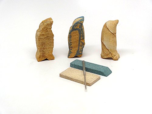 ALL INCLUSIVE KIT - Box includes all necessary supplies - sandstone, rough carving file, and a metal file for fine details. No additional accessories or items required outside of kit. Comes in your choice of the following animal options: Bear, Coyote, Eagle Head, Fish, Owl, Penguin, Ram, Ram Head, Seahorse, Seal, Buffalo. For ages 6+.