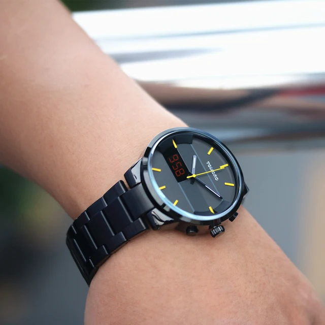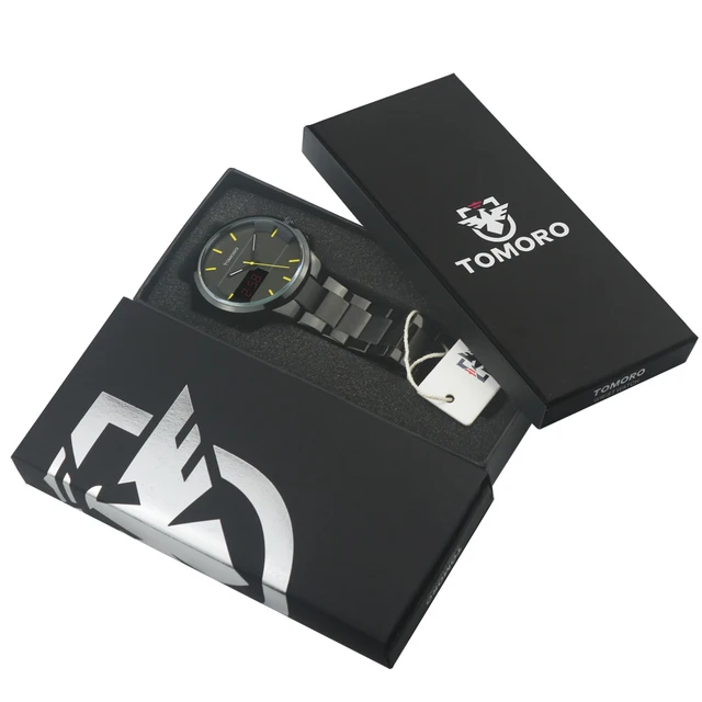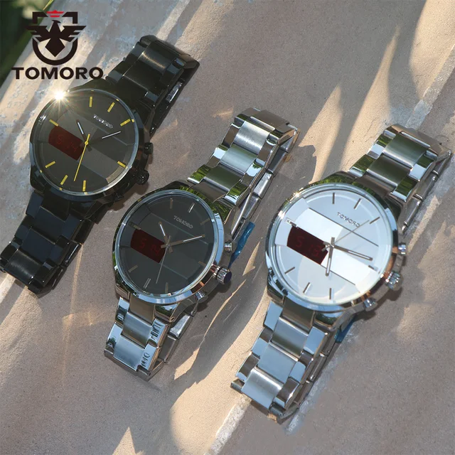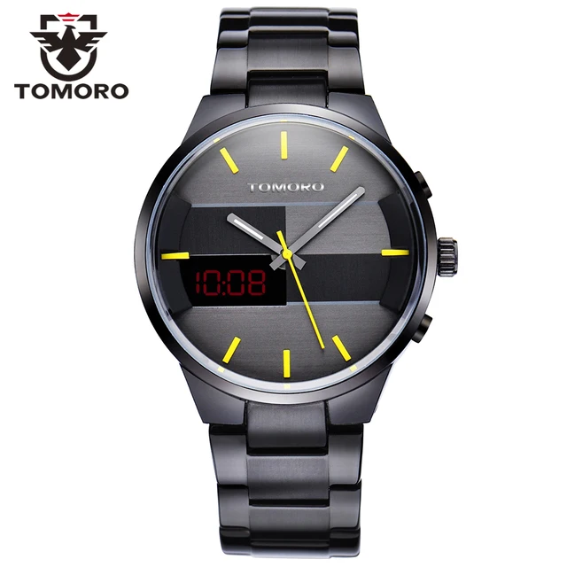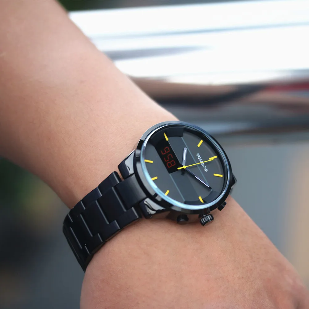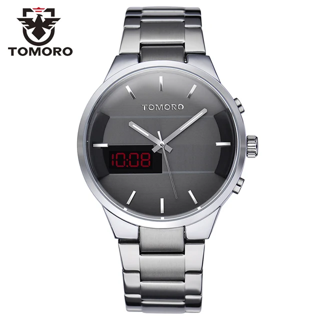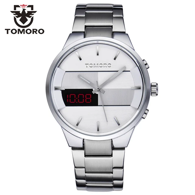 | [해외] TOMORO 새로운 원래 디자인 품질 남자 디지털 및 석영 듀얼 시간 캐주얼 시계 남성 패션 닦았 금속 스틸 Relogio LED 시계 |