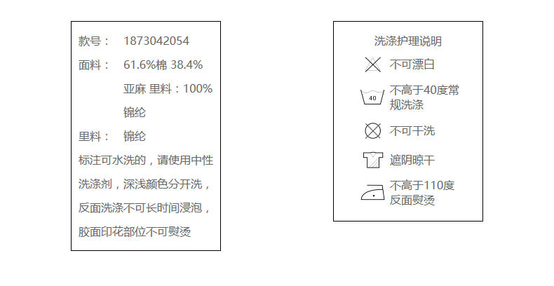 61.6%棉 38.4%亚麻 里料:100%锦纶