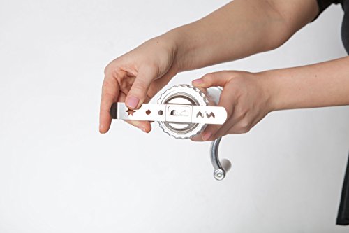 • Easy to load and use; simply unscrew top cover to open and fill with dough, slide plate to the desired shape and turn handle