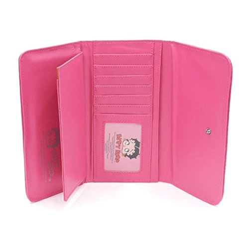 Binding : Apparel Product Description This is a Licensed BETTY BOOP new design printed on leather like PU,2 button buckle closed; Inside attached with a detachable checkbook holder ; Main wallet can put 6 credit cards and one picture window, and has 4 slip in pocket for bills , on the back of the wallet, there is a zipper closed pocketc 0