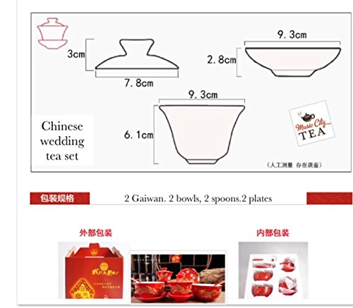 -. Feature : High quality ceramic 6 oz Gaiwan, very beautitul refined pieces, Best for a wedding gift for a new couple. / #38, The Chinese symbol on this Gaiwan means "Double happy", this mean you are not lonely any more. This Best seller tea cups. worth it to have a fancy Gaiwan / This is a Chinese wedding tea cups and the Tea set is for a new couple getting married. For more Gaiwans check for "music city tea" brand at amazon. / Great Gaiwan you can find all other accessories at music city tea brand. / All the Gong fu sets we sell are at musiccitytea shop in the amazon marketplace. "Warning these items are fragile and may be damaged during shipping, if you receive a damaged item please contact our customer service department".