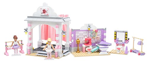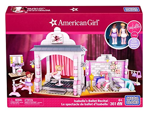 -. Feature : Buildable ballet studio, main stage with spinning floor, and rehearsal area with real fabric details / Two highly detailed, fully articulated mini figures include Isabelle and Luisa, with ballerina outfits, ballet sports bag, and one additional tutu / Accessories include a fabric curtain, a ballet bar, a sewing machine, mannequins, mirrors, a clothing rack, an auditorium bench, and a vanity / Includes exclusive story book / Combine with other Mega Bloks American Girl play sets and build your own stories