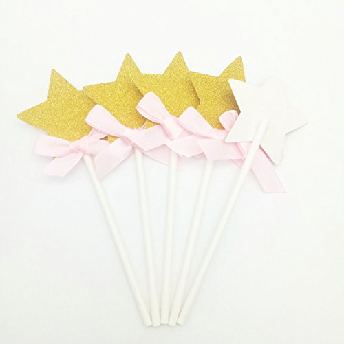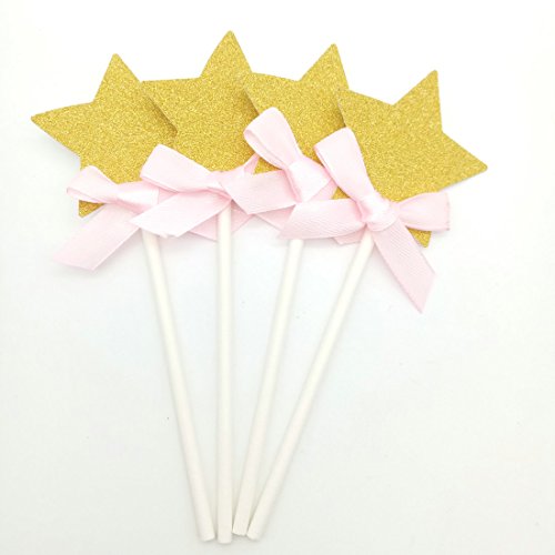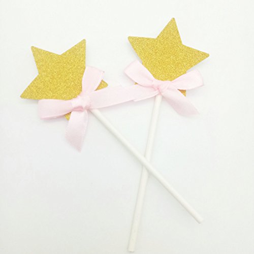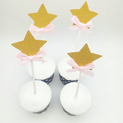Paity gold Star cupcake toppers star pink ribbon cupcake toppers star food picks twinkle twinkle star banner star first birthday Wedding Cupcake Topper / set of 18
