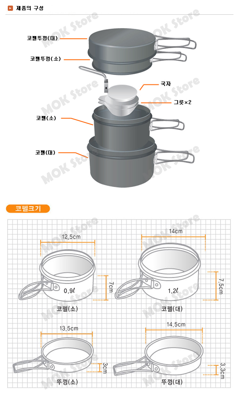 - Hard Anodize Coated Portable Cookware for 1~2 People, Outdoor- Made with 30 micron anodize coated top quality aluminium -> Excellent resistance of corrosion & abrasion- Included Plastic Bowls can use in microwave oven- Mesh Carry Case is included -> Easy to keep and carry- Excellent Durability