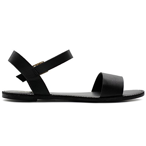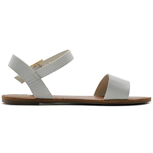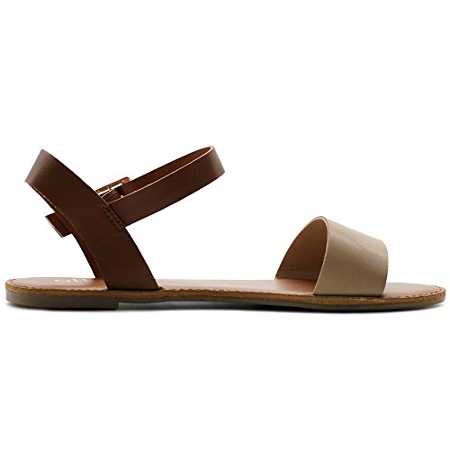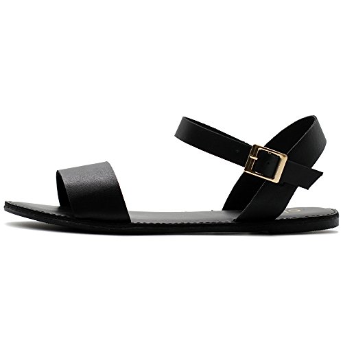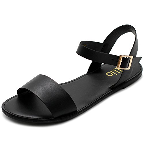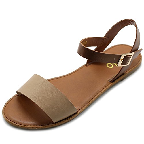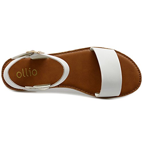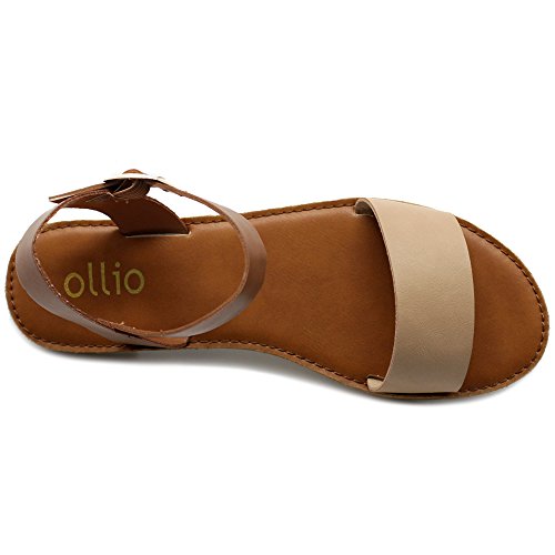 Ollio Women's Shoe Comfort Simple Basic Ankle Strap Flat Sandals