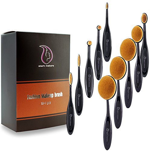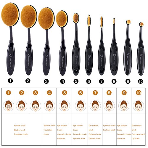 Makeup Brushes Set Professional 10 Pieces Oval Make Up Brushes Soft Toothbrush Shaped Design for Foundation, Concealer , BB cream, Powder with Box...
