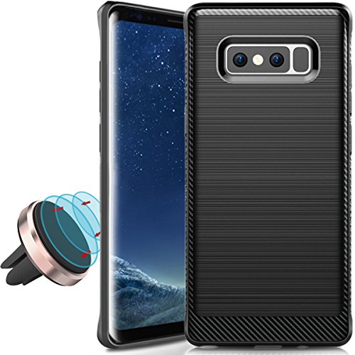 Samsung Galaxy Note 8 Case (Black) 2017, COOLQO Brushed Grip Resilient Strength Flexibility Durability, Durable Anti-Slip, TPU Defensive Cover Skin + Phone metallic plate For any Magnetic Car Mount