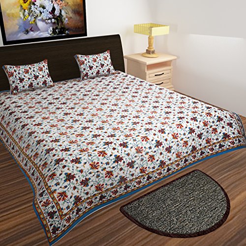 Traditional Mafia rses777759 Luxury Collection Printed Double Bed Sheet Set with 2 Pillow Covers, King, Blue Rose