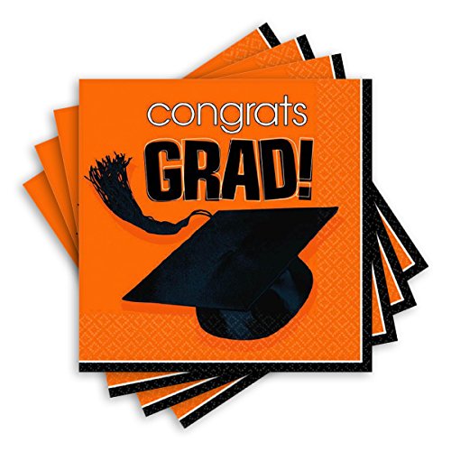 Flying Colors Graduation Party School Colors Luncheon Napkins Orange Tableware, Orange, Paper , 6" x 6" Pack of 36
