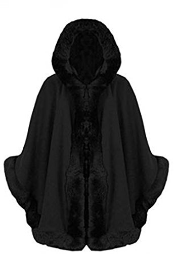 Style Fashion-womens Cape Poncho Faux Fur Lined Trimmed Hooded Jacket