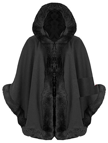 Product DescriptionWomens Cape Poncho Celebrity Faux Fur Lined Trimmed Hooded Cape Cardigan Jacket, Women's Cape Faux Fur Trim Hooded Poncho, 70% Laine-Wool, 20% Elastane, 10% Viscose,Machine washable at 30 degrees0