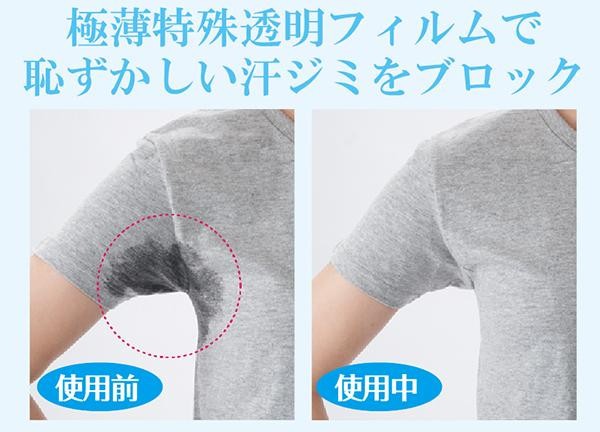 | 極薄特殊透明フィルムが気になる汗ジミを抑えます!! |