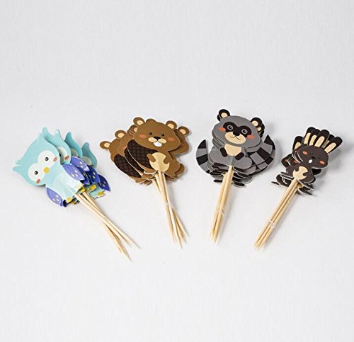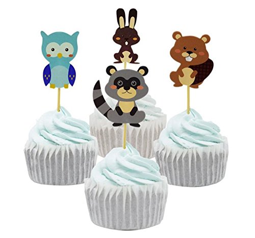 Yunko 24 Pcs Woodland Forest Animal Owl Cupcake Muffin Toppers Baby Shower Birthday Party Favors