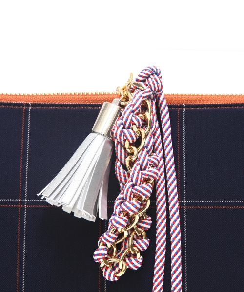 에리쏜(HERISSON) KARMIN 체크 태슬 클러치백-Navy