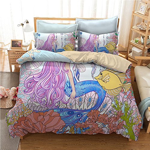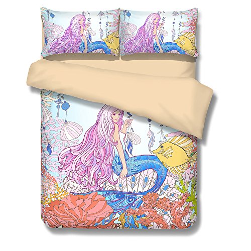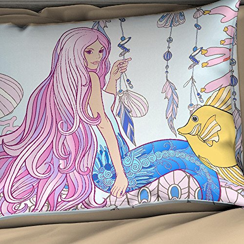 (BOMCOM)/Bedding Bath/Bedding/DIRECT FROM USA/BOMCOM 3D Digital Printing Hand Drawn BOHO Mermaid with Long Pink Hair in Underwater World 2-Pi...