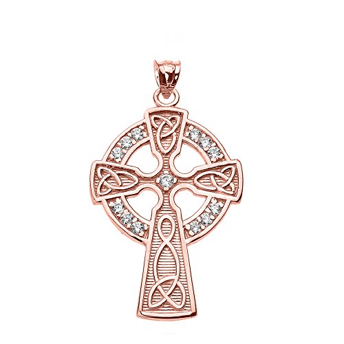 -. Binding : Jewelry -. Brand : Celtic Pendants -. Department : womens -. Feature : high polish gold celtic cross pendant individually hand-set with 13 natural white diamond accents / faithfully handcrafted in solid 10k rose gold in fine polished finish / comes with free special gift packaging / made in the USA yet offered at factory direct jewelry price / ships from the manufacturer directly to the customers -. Label : Claddagh Gold -. Manufacturer : Claddagh Gold -. Model : QP3857R-Diamond-10k-Pendant -. MPN : QP3857R-Diamond-10k-Pendant -. PartNumber : QP3857R-Diamond-10k-Pendant -. ProductGroup : Jewelry -. ProductTypeName : FASHIONNECKLACEBRACELETANKLET -. Publisher : Claddagh Gold -. Studio : Claddagh Gold -. Title : 10k Rose Gold Celtic Cross Diamond Accent Pendant