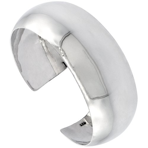 This is a big plain Domed Sterling Silver Cuff bangle bracelet about 1 inches wide with a highly polished, shiny surface. It is very attractive excellent quality all handmade and no two are exactly the same. it feels nice, solid and smooth.Feature