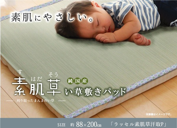 【商品名】純国産 やわらかい草の敷きパッド 『ラッセル 素肌草 汗取P』 88×200cm