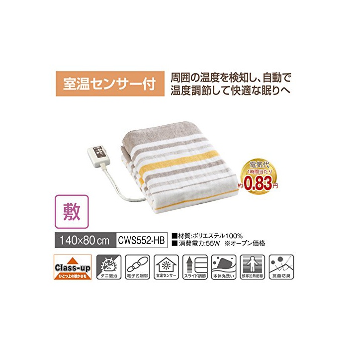 원본상품명:電(KODEN) 電毛布(敷毛布) 抗菌防臭加工 室センサ付 シングルM(140×80cm) CWS552-HB