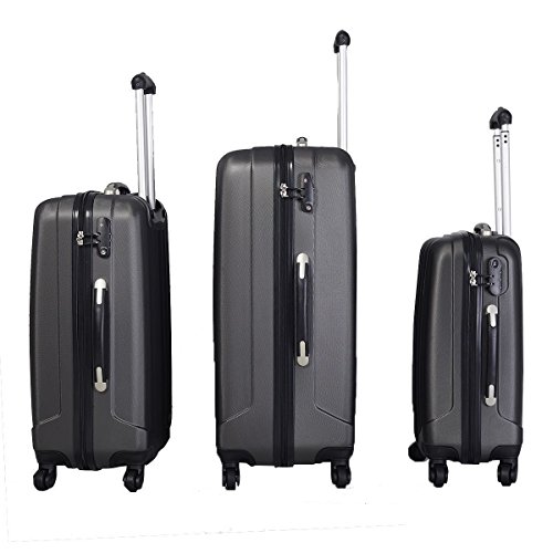 Product Description Are you ready to travel? This awesome, hardsided 3-piece luggage set is perfect for traveling. No matter the multi-directional wheels, or the ergonomically designed telescoping handles will add much convenience to your trip. The spacious main compartment and zippered pockets keep your travel essentials, your small valuables well organized. The firm coded lock guarantees the security of your luggage. Take the luggage set, take your pleasure along the trip!