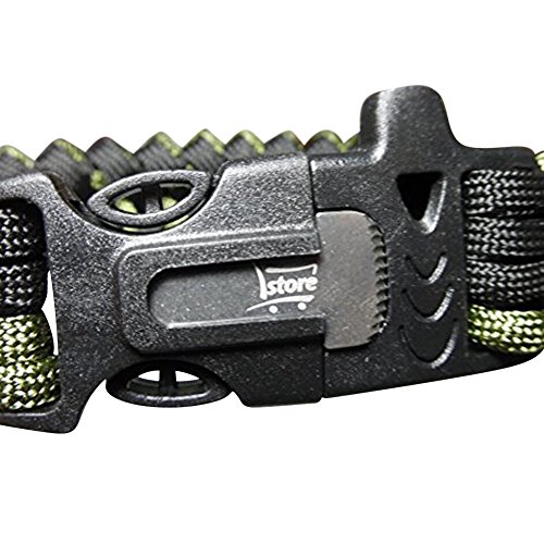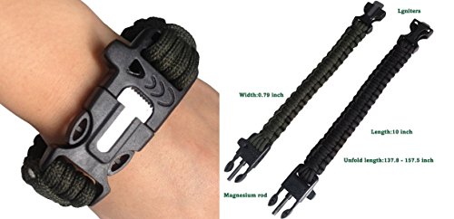 L.Store (R) Outdoor Army Style Survival Paracord Bracelet with Fire Starter, Scraper Kit- Color: Army Green Interlaced with Black (2-in-1 Pack) Paracord Survival Bracelet