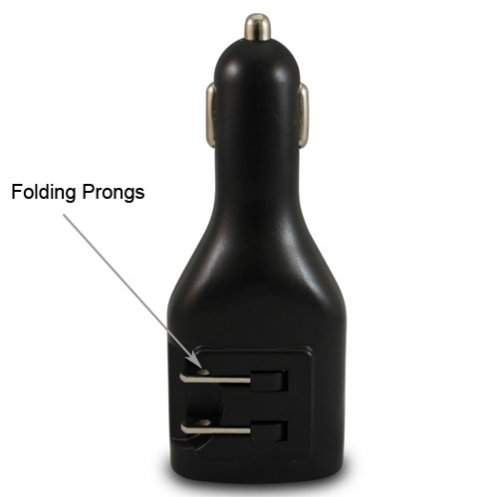 - Feature : Fonus Brand Car + Home Charger. Charge two devices at once with this compact All-in-One charging device. / Connects your micro-USB handset to your 12v DC vehicle power outlet or standard 110V wall socket for simultaneous talk and charge. / Wall outlet prongs fold for easy storage and travel. Recharge on the go by harnessing power from your car with a lighter adapter. / Phone can be used during charging. Intelligent IC chips prevent overcharging. Short circuit protection. LED charging indicator. / In-line dual USB charging sockets. Micro-USB cable can be used (Sold Seperately) for charging.