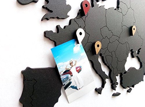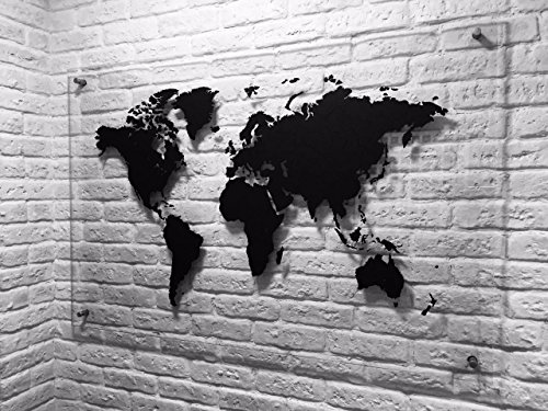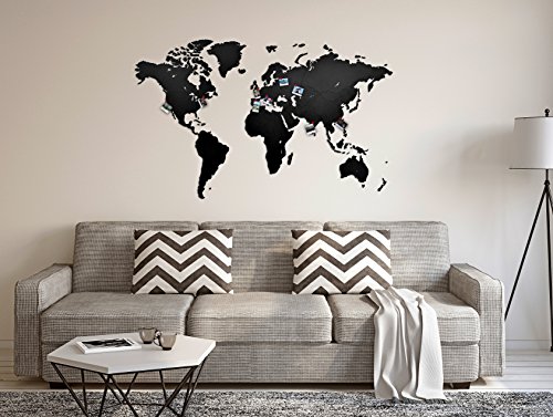 GREAT WORLD MAP WOODEN DECORATION FOR LIVING ROOM OR OFFICE - DELUXE BLACK DECOR FOR TRAVELLERS - DIY WALL ART