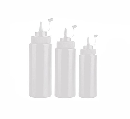 2PCS Empty Clear White Refillable Plastic Squeeze Sauce Condiment Bottles Container Seasoning Dispenser for Ketchup Mustard Sauce Vinegar Cream Honey Salad Dressing (370ML)