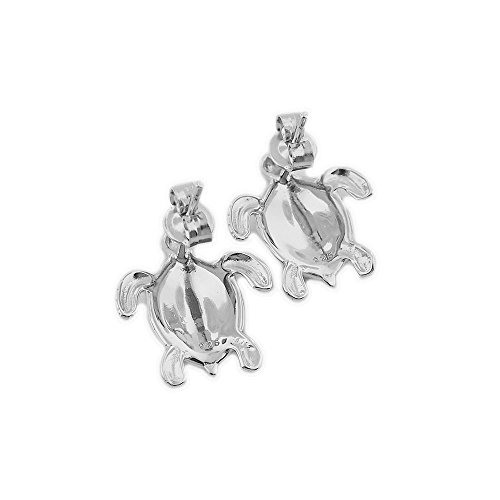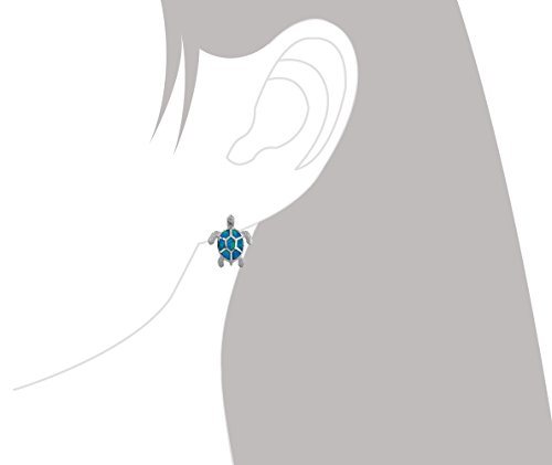 Beautiful turtle stud earrings with aqua colored synthetic opal inlay and post backing. Turtle measures 5/8 inch (0.63 inch) tall and 9/16 inch (0.56 inch) wide. Rhodium plated sterling silver for superior quality and shine as well as anti-tarnish properties.