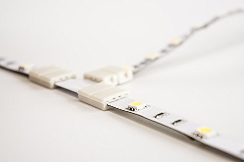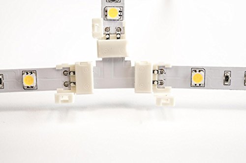 Our Gapless Angle Connectors are ideal for making seamless connections and angles between sections of LED light strip. They come in 8mm and 10mm varieties compatible with 3528, 5050 and 2835 style LEDs in both single color and RGB. They are simple and easy to install, requiring no soldering, no tools, and no electrical knowledge. Product Features : Available in 8mm Single Color (3528), 10mm Single Color (5050) and 10mm RGB (5050) Available in L, T and X shapes Simple no tool installation 1 Year Warranty Installation Instructions : Ensure your the contacts on your LED light strip are clean Open the white clasp of the connector Insert the LED light strip into the clasp, under the prongs - making sure to match the + and - on the strip to the + and - on the clasp Close the clasp Gently pull on the LED light strip to confirm you've made a solid connection Your connection is made! Our Hit Lights Gapless Angle Connectors are compatible with all 8mm and 10mm (3528 and 5050) LED light strips Hit Lights has been selling LED products on Amazon for five years, and is the first Amazon Certified Brand to be UL Safety Approved. We are committed to being the best LED and strip light solution provider on Amazon.
