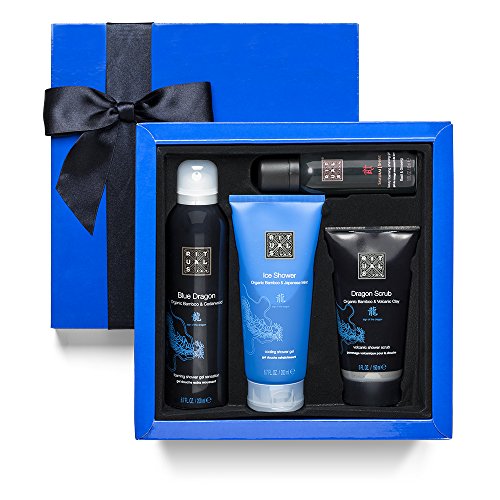 A gift set specially developed for men containing a shower foam, cooling shower gel, body scrub and shaving gel.