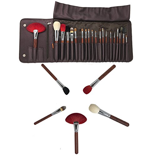 Zoreya 20Pcs All Natural Hair Superior Makeup Brushes Professional Make Up Brush Set With Vegan Leather Cosmetic Bag PLUS FREE BONUS 5 Piece Travel Set