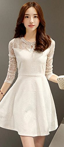 -. Feature : 総レースの優雅な上品かつセクシーなワンピースです。結婚式、披露宴、二次会、パーティー、お呼ばれを始めとし、発表会、入学式、卒業式、卒園式などなどイベント事に大活躍間違いなしの一着。薄手なのでオールシーズン(春・夏・秋・冬)使えます。もちろんデートにも! / このワンピースのデザイン上、ウエストがくびれているラインなので着痩せ効果あり◎上品に、シンプルに、お洒落に、さらに痩せて見える清楚系人気アイテム。 / きれいめレースが女子力アップ!モテアイテム間違いなしの上品、エレガントなドレス風ワンピース。 / 【サイズ】・S→着丈78cm 身幅39cm 袖丈50cm ・M→着丈78cm 身幅40cm 袖丈51cm ・L→着丈79cm 身幅43cm 袖丈52cm ・XL→着丈79cm 身幅44cm 袖丈54cm ・XXL→着丈79cm 身幅45cm 袖丈55cm ※多少の誤差はご了承ください。 / カラーはブラック、ホワイトの二色展開です。カラーがシンプルなワンカラーのワンピースなのでお持ちのアクセサリー(ピアス、イヤリング、ネックレス、ジュエリー、指輪、リングなど)や足元もパンプス、ブーティー、ミュール、ブーツ、サンダル等、合わせやすいワンピース。カバンはクラッチからハンドバッグ、トートバッグ、ショルダーバッグなどこちらも相性抜群!