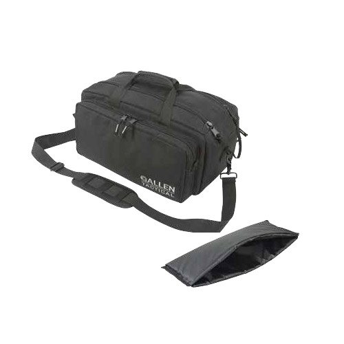 -. Binding : Sports -. Brand : Allen Company -. Color : Black -. Feature : Designed with only the toughest, roughest users in mind / 17" x 8" x 8" main compartment / Two 16" x 7" x 2" external pockets / Internal compartment dividers / Shoulder strap with gripper included -. Label : Allen Company -. Manufacturer : Allen Company -. Model : tactical-8 -. ProductGroup : Sports -. ProductTypeName : SPORTING_GOODS -. Publisher : Allen Company -. ReleaseDate : 2010-06-09 -. Studio : Allen Company -. Title : Allen Tactical Deluxe Tactical Range Bag, Black