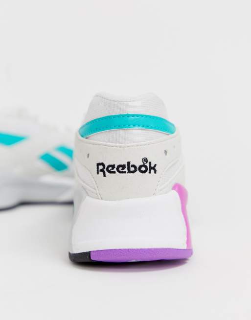 Reebok Aztrek white and teal sneakers