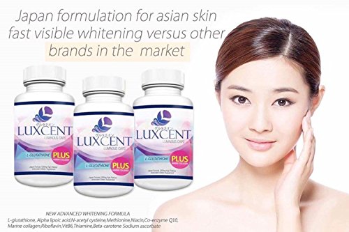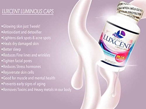 -. Feature : Luxcent Luminous Caps Japan Formula - L-Glutathione with Marine Collagen Whitening Capsules - 60 capsules, 30-day supply / The Most In-demand, Effective, High Quality, Potent Brand of Glutathione. Visible results within 10 days. / Intelligent antioxidant formulated in Japan promotes cell renewal and cell restoration. Protects cells from free radicals by slowing premature aging and sagging. / Triple benefits in one bottle: Anti-aging, Anti-stress and skin whitening. / This unique formula is synergetically combined with essential glutathione boosters & B Vitamins to encourage cellular metabolism for cell repair, hydration and rejuvenation.