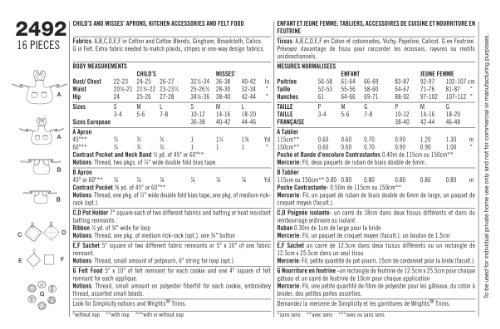 -. Feature : Aprons in size a (s - l / s - l), simplicity pattern 2492 / Number of looks included:7 / Designed and manufactured in theusa