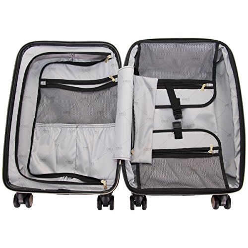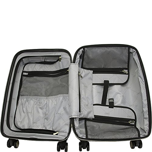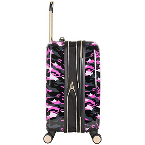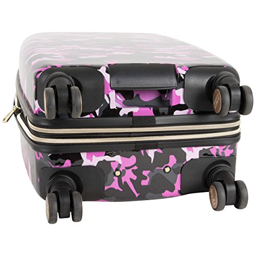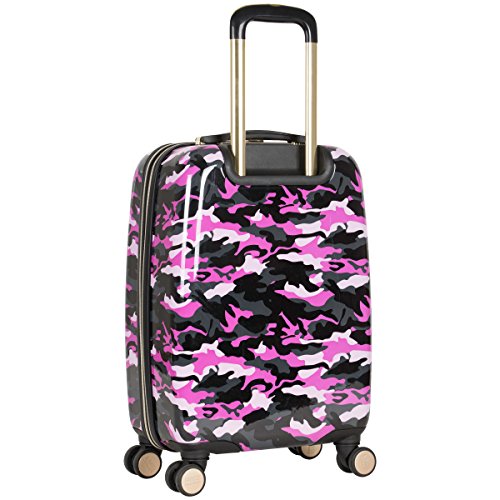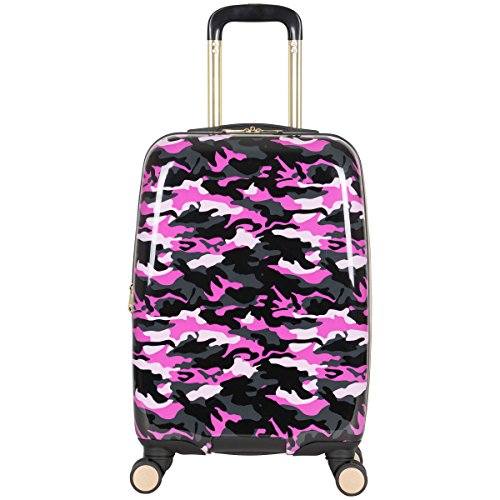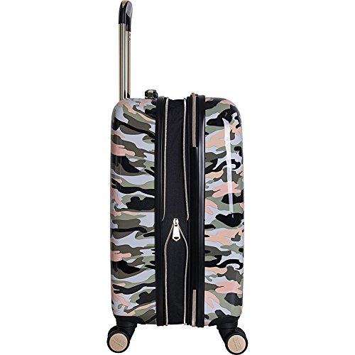 Studio : Aimee Kestenberg Luggage Child Code Publisher : Aimee Kestenberg Luggage Child Code Binding : Apparel Product Description Abs with camo printed PC 20" expandable 8 wheel upright/ carry-on luggage. Expansion feature for added carrying capacity. Lightweight construction. 8-Wheel spinners allow smooth 360 degree rotation. Durable ABS polycarbonate exterior body with fully lined interior. Main compartment consists of a side zipper pocket, a garment restraint panel with secure buckle closure and two mesh zipper pockets to hold smaller sized items. Inside lid section features a large u-shaped zipper pocket, with two elastic open top shoe/ accessory pockets, and a mesh zipper pocket. Flexible top handle for easy lifting. Easy to grab molded bottom handle. Locking retractable handle system. Manufacturer 10 year limited warranty. Overall Dimensions (including wheels): 22" h x 13.5" w x 9.5"-11" D. Weight: 6.95 lbs. 0
