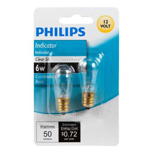 Philips 416099 6-Watt S6 12-Volt Candelabra Base Indicator Light Bulb, 2-Pack
