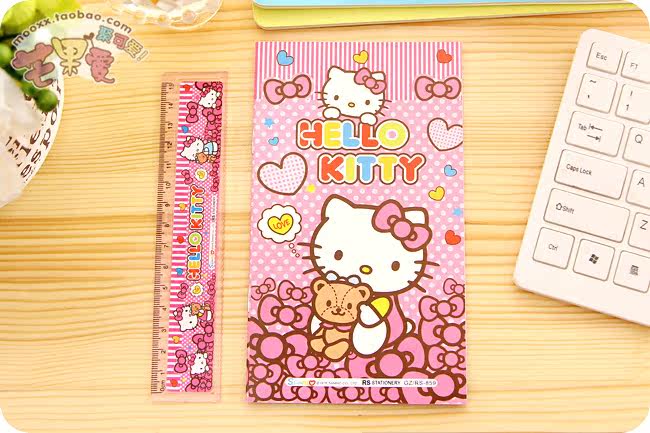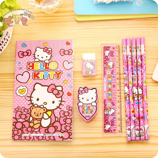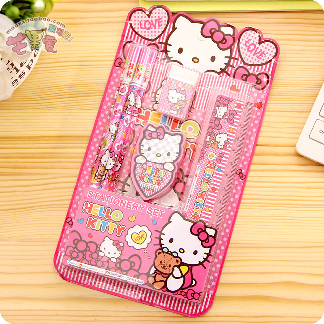 hello kitty cute cartoon stationery set pencil sharpener + eraser + ruler + book +