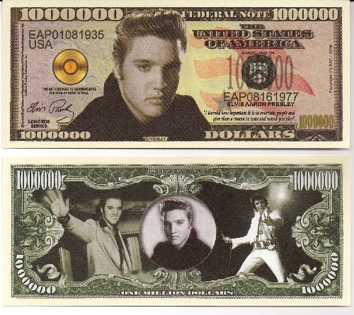 ReleaseDate : 2017-10-27 Studio : Elvis Presely Collectible Publisher : Elvis Presely Collectible Binding : Toy Product Description Elvis Presely Million Dollar Novelty bill. These bills are the same size and feel of real money. They are finely detailed on both front and back with high quality printing. Great gift or collectors item. The bill comes in a hard plastic pvc bill holder to protect it's beauty. Bill can also be removed from holder if preferred. 0