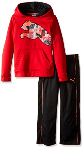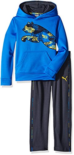 Two piece tech fleece pull over pant set with big cat on hoodie