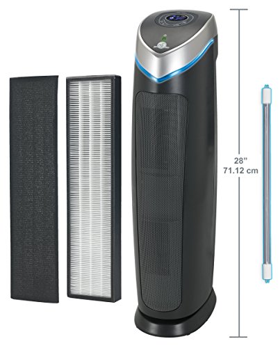-. Binding : Kitchen -. Brand : Germ Guardian -. Feature : For medium- or large-sized rooms at the home / Dimensions: 6.1L x 9.5W x 27.25H inches / Made from solid black plastic / 4-stage cleaning process / UV-C light runs for 6-8 months without replacement -. Label : Guardian Technologies LLC -. Manufacturer : Guardian Technologies LLC -. MPN : AC5250PT -. PackageQuantity : 1 -. PartNumber : AC5250PT -. ProductGroup : Home -. ProductTypeName : HOME -. Publisher : Guardian Technologies LLC -. Studio : Guardian Technologies LLC -. Title : Germ Guardian 3-in-1 UV-C & True HEPA Digital Air Cleaning System with Pet Pure Filter - 28 in.