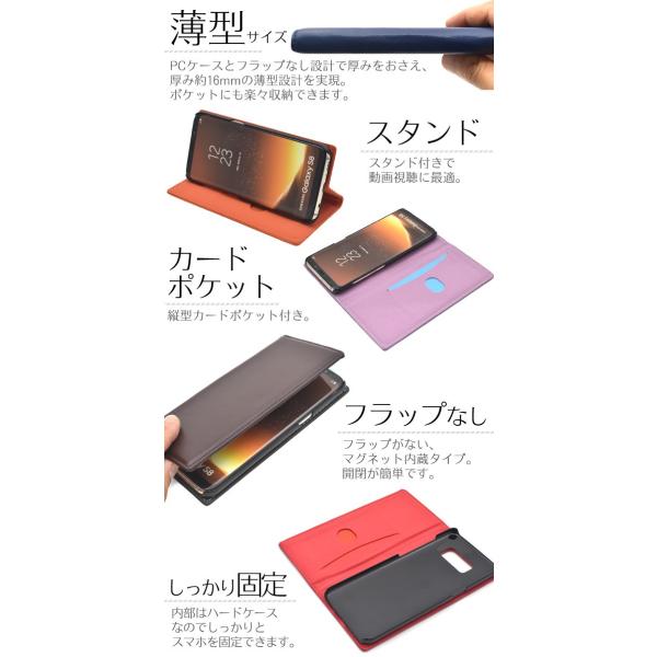 | 商品の説明 | 高級感あふれるシープスキンレザーを使用した、シープスキンレザー手帳型ケース。 しっとりと吸い付くような手触りの良さと、きめの細かさ、柔らかさが抜群な 本物のシープスキンレザーを使用しています。 背面を折り返すとスタンドとして使用できるので、動画視聴に便利です。 横開きタイプなので、手帳のように使うことができます。 また、内側には収納しやすい縦型のカードポケットが付いています。 フラップがない、マグネット内蔵タイプなので開閉が簡単です。 内部ケースはハードケースなのでしっかりとスマートフォンを固定できます。 PCケース採用とフラップなし設計で厚みをおさえ、 厚み約16mmの薄型サイズを実現。 ポケットにも楽々収納できます。 |